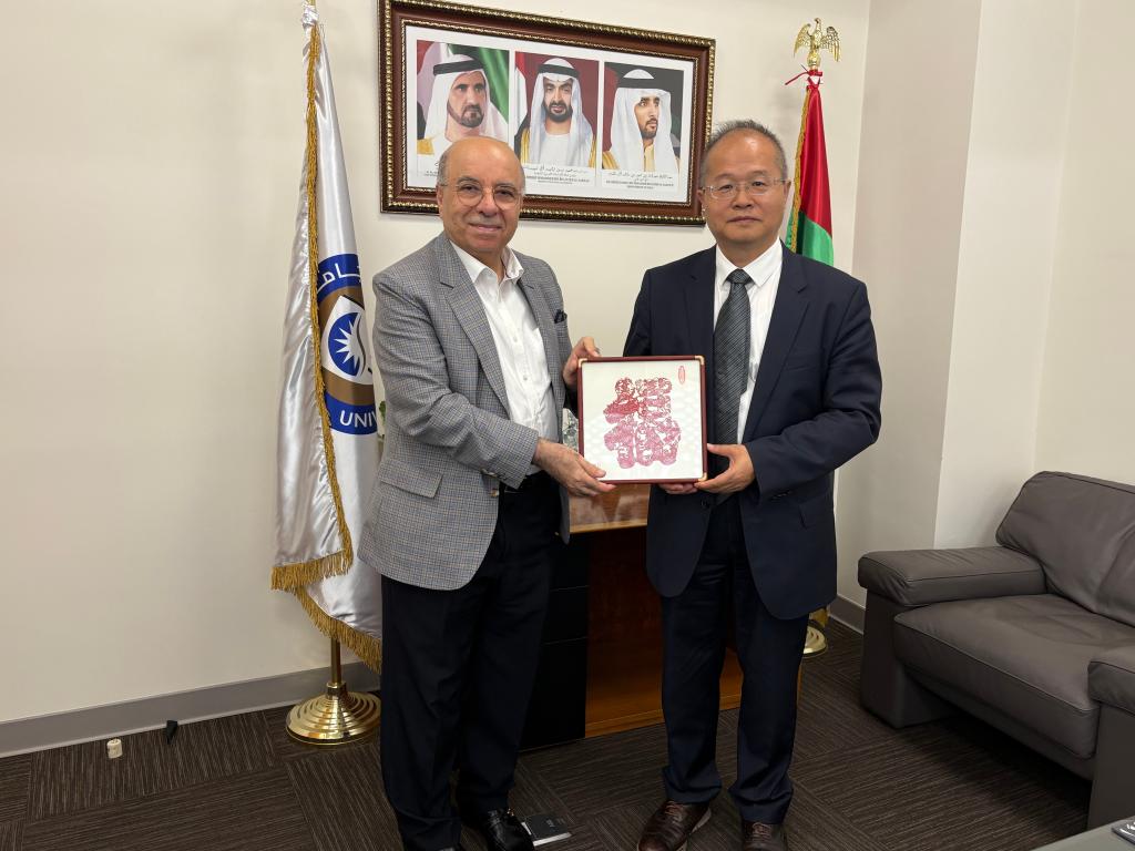 6月19日至20日,白学军副校长出席了在阿联酋迪拜大学举办的来华留学展。展会期间,他与迪拜大学副校长Hussain Al Ahmad进行了深入交流,并访问了迪拜大学孔子学院,双方围绕国际中文教育等项目合作达成多项共识。随后,代表团访问了中国驻迪拜总领馆,并与欧渤芊总领事举行座谈。座谈会上,白学军副校长介绍了我校在服务“一带一路”教育合作中的创新举措和突出贡献。