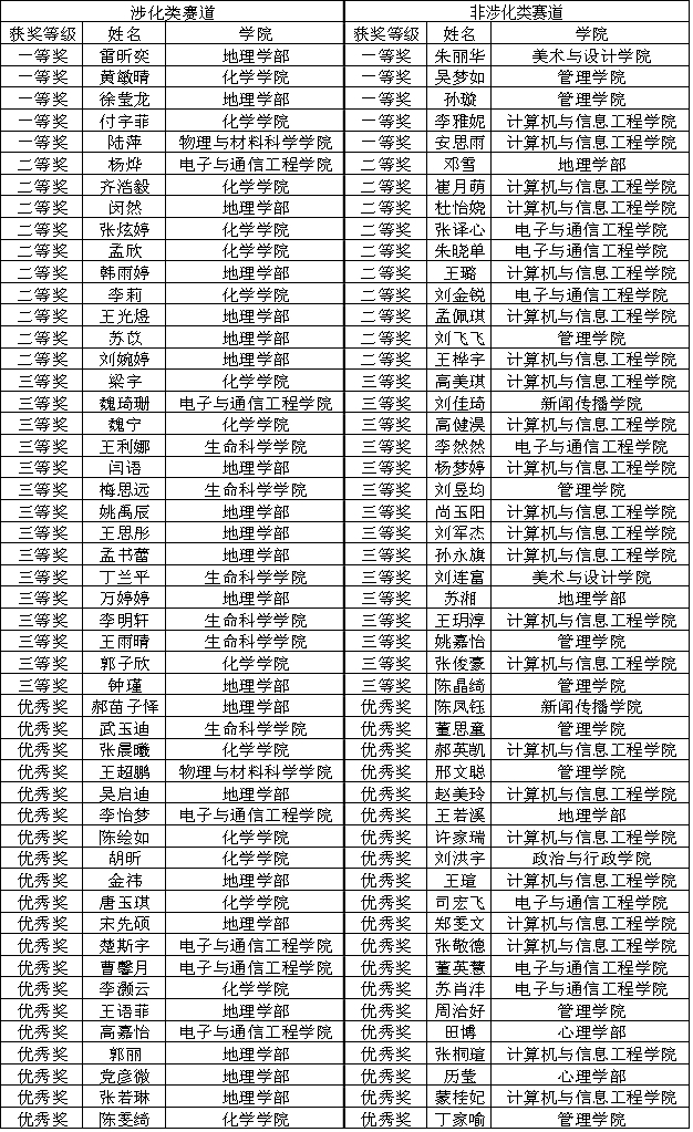 获奖名单