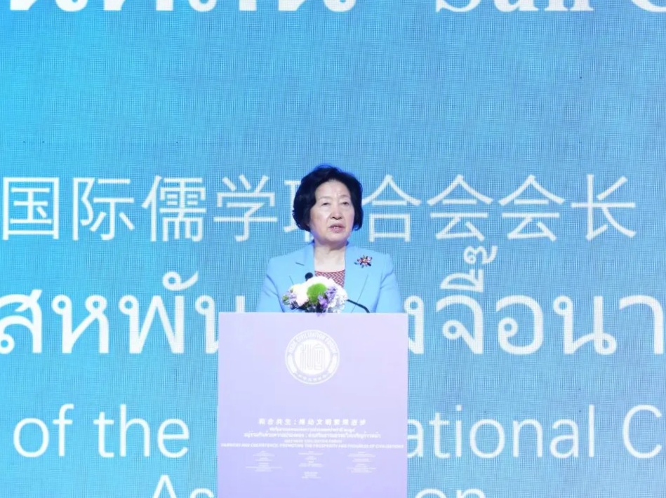 本站讯(通讯员 赵英东)6月10日,联合国“文明对话国际日”来临之际,2025和合文明论坛在泰国曼谷举行。国际儒学联合会会长孙春兰,泰国副总理兼国防部长普坦·威乍耶猜,意大利前总理、欧盟委员会前主席罗马诺·普罗迪,泰国前副总理威萨努·科岩,联合国教科文组织前助理总干事费闵·马多克,中国驻泰国大使韩志强出席论坛并致辞。日本前首相、国际儒学联合会理事长福田康夫发表书面致辞。泰国前副总理、泰中文化促进会主席披尼·扎禄颂巴主持论坛开幕式。来自中国、泰国、法国、美国、意大利等13个国家和地区的政界、学界、工商界、媒体界代表500人参加会议。世界汉语教学学会会长、天津市政协科教委副主任、我校部校共建国际中文教育发展研究院院长钟英华应邀参加开幕式及中泰大学校长论坛。