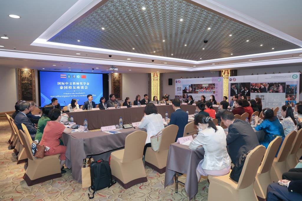 仪式结束后,郁云峰、钟英华及校友会理事会代表座谈,座谈会由泰国校友会会长朱光明主持。