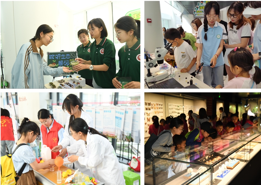 “绿色科普欢乐汇”上,来自市环科院、市生态环境监测中心,我校地理学部、化学学院、生命科学学院、物理与材料科学学院等11家单位,设置了12个科普市集展台和6大校园环保教育体验打卡点,包含趣味互动游戏、科普讲解、机器人互动表演、打卡盖章纪念等活动。低碳生活、减塑行动、数智赋能、生态解码、萌宠孵化……各点位科技创意无限、科普互动感拉满,吸引了大中小学生们纷纷驻足体验。