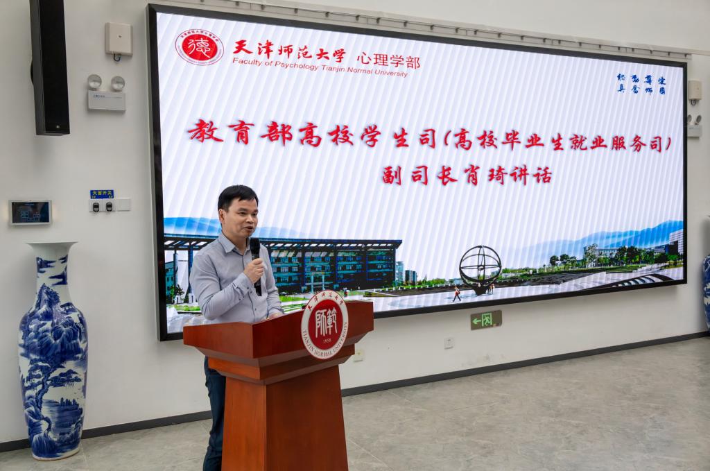 仪式上,与会师生共同观看了纪录片《我们的大先生》,共同学习沈德立先生“爱国、尊师、勤奋、认真”的治学精神和“人以德立”的崇高品质。心青年志愿服务团团长姜颖作服务团情况介绍,并带领服务团全体成员庄严宣誓。沈德立科学家精神宣讲团成员、学部“心青年开讲啦”讲解员选拔大赛一等奖获得者赵莞歆、校内指导教师代表、天津市学生心理健康教育发展中心副主任李馨、校外宣讲员代表、天津实验中学心理健康教师郭雯先后发言,表达了传承科学家精神,讲好大先生故事的决心。