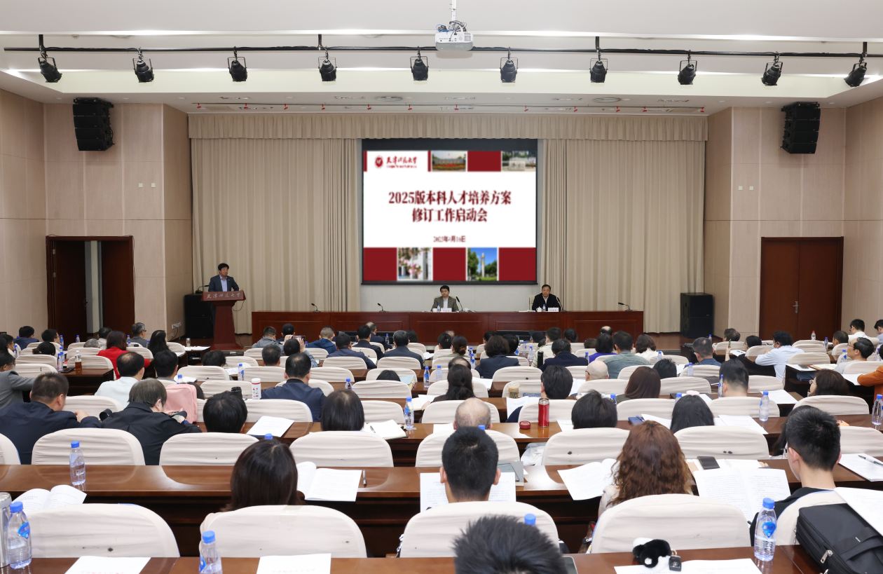 本站讯(通讯员李倩 吴珊珊 纪亚宁)4月16日下午,我校召开2025版本科人才培养方案修订工作启动会,会议围绕本轮修订工作的目标定位、关键任务、落实举措进行全面部署。校党委副书记、校长巩金龙出席会议并讲话,校院督导组专家、学校相关职能部门主要负责人、各学部(院)主要负责同志、分管学生工作副书记、分管本科教学副部(院)长、专业负责人、教学办主任、学工办主任及教师代表等200余人参加会议。会议由校党委常委、副校长纪德奎主持。