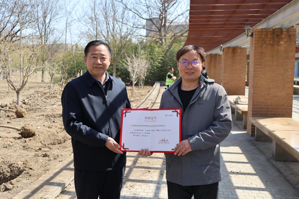 纪德奎代表学校对MBA校友多次向母校捐赠的善举表示感谢,并为校友代表颁发捐赠证书。他表示,在全校上下深入贯彻落实第九次党代会精神、推动各项事业高质量发展的进程中离不开广大校友的支持。此次校友捐赠的紫藤蕴含着“紫气东来”的美好寓意,不仅为校园增添盎然生机,更彰显着校友对母校的深情厚谊与祝福期许,凝聚着校友们源远流长、薪火相传的赤子之心。期待这十三棵根植于母校的紫藤在师生悉心守护下茁壮成长、枝繁叶茂,激励学子励精图治、接续奋斗,见证母校蓬勃发展、谱写辉煌篇章。