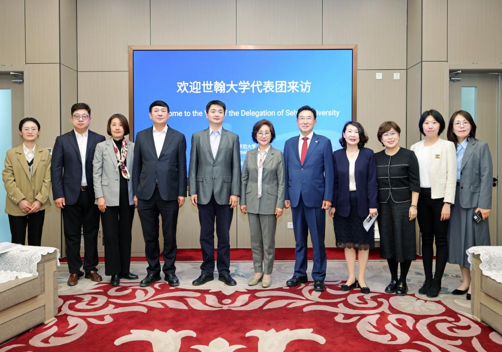 本站讯(通讯员 郝晴)4月9日,韩国世翰大学名誉校长李昇勋、总长崔美顺一行来校访问。校党委副书记、校长巩金龙会见代表团一行,我校部校共建国际中文教育发展研究院院长钟英华及相关负责人等陪同会见。