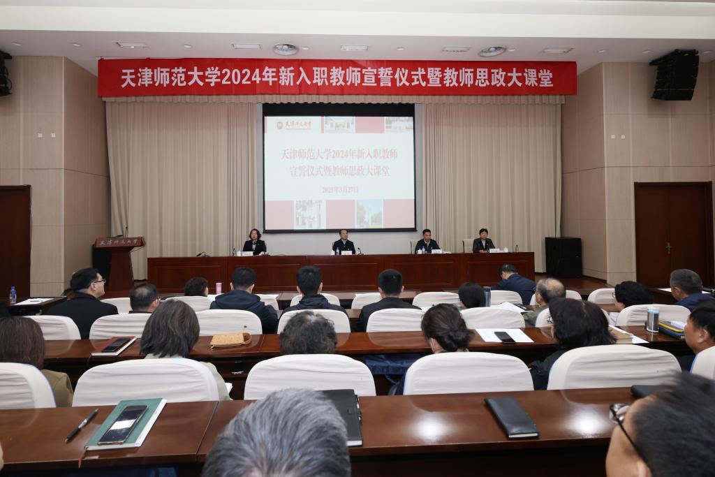 本站讯(通讯员 孙盛 孙智慧)3月27日下午,我校举行2024年新入职教师宣誓仪式暨教师思政大课堂。校党委书记曲凯出席,教师工作委员会成员单位负责同志、各基层党委书记、各单位负责教师工作人员和2024年全体新入职教师参加。会议由校党委副书记陈玳玮主持。