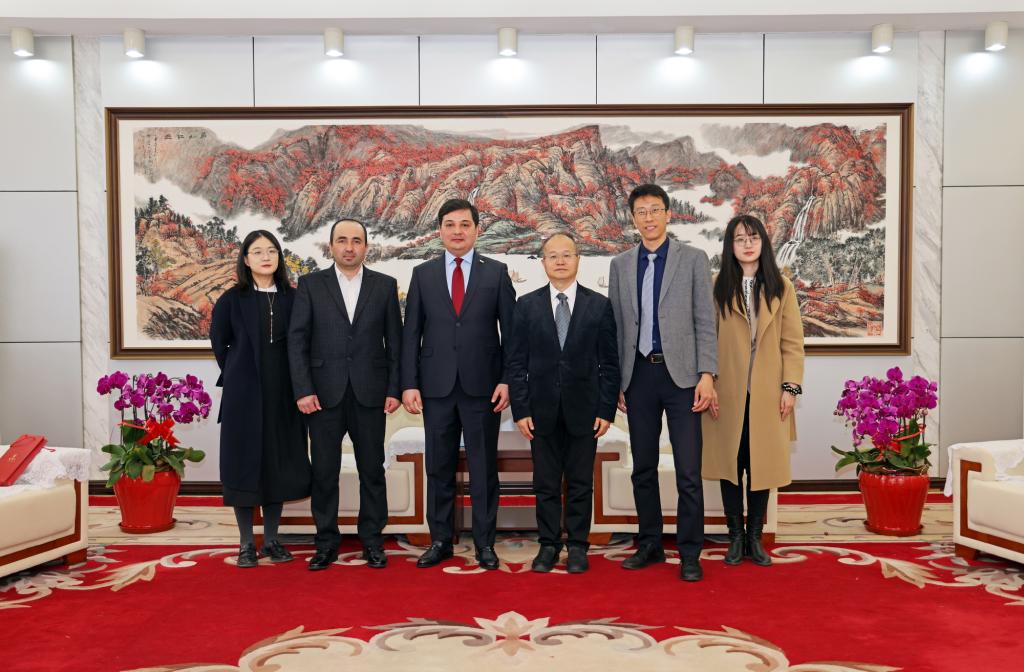本站讯 (通讯员 毛雁)近日,乌兹别克斯坦国立费尔干纳大学副校长、世界史专家奥塔别克·马赫穆多夫(Makhmudov Otabek Validjonovich)教授、对华事务协调员比龙(Kambarov Nasibillo Shukirilloevich)一行来校访问。我校党委常委、副校长白学军教授会见代表团一行,国际交流处负责人参加。