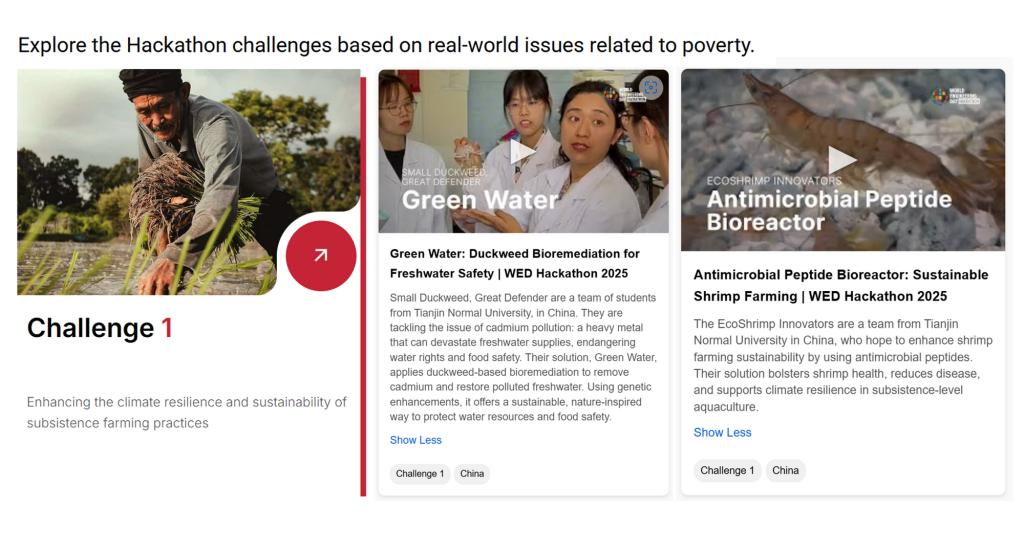 本届挑战赛以“消除贫困”为核心主题,要求参赛团队围绕联合国2030年可持续发展目标中的相关议题,提出创新性解决方案。我校的两支参赛队伍针对可持续发展问题提出创新且切实可行的解决方案,并通过实验进行验证。最终成果以专业英文报告及视频解说的形式提交,充分展现了师大学子的创新思维与实践能力。