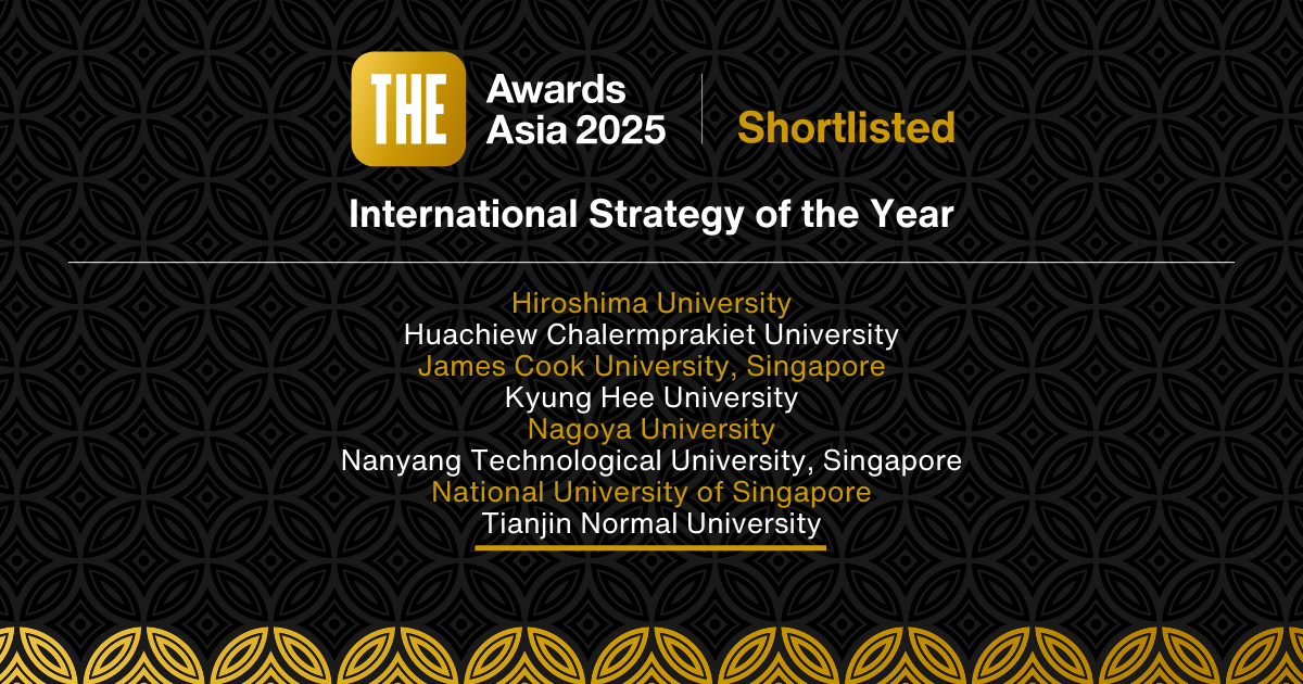 泰晤士高等教育亚洲大奖(THE Awards Asia)是英国泰晤士高等教育大奖(THE Awards)的亚洲区域奖项。近年来亚洲大学的崛起和取得的成就广受世界瞩目,于是泰晤士高等教育于2019年首次将这个大奖引入了亚洲,提供一个独特的平台帮助大学介绍他们的故事,彰显其在不同领域取得的成就和影响力。