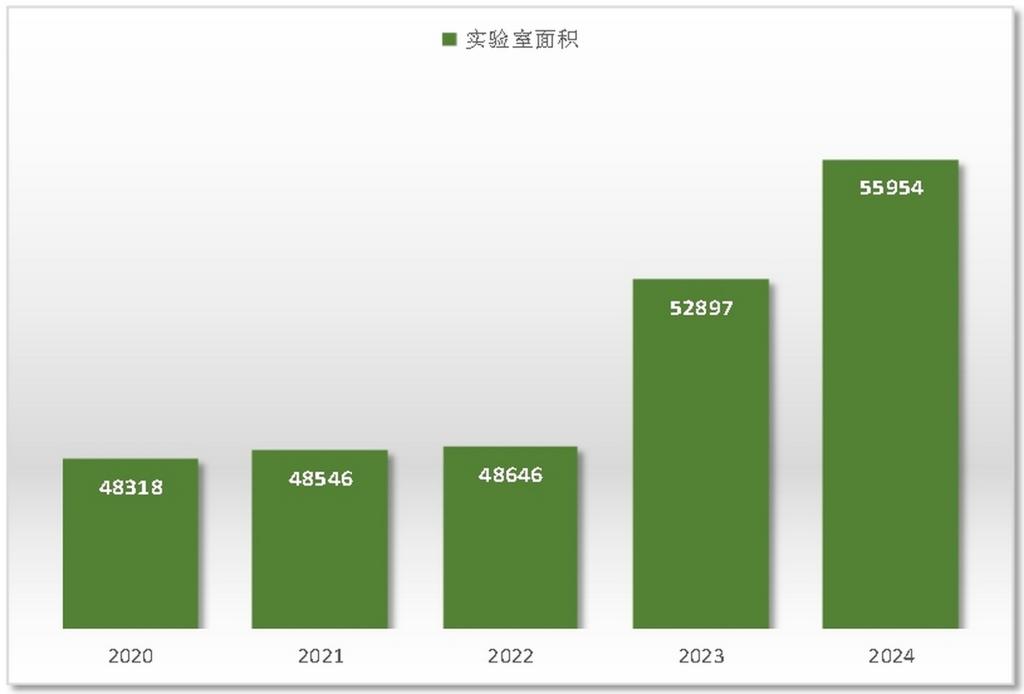 五年来,以公房调整为契机,学校公房资源布局逐步优化。我校本科实验场所面积逐年增加,基础实验室和专业实验室使用面积由2020年的48318平方米增长至2024年的55954平方米,五年内总面积增加7636平方米,增幅15.8%。至2024年,本科实验场所生均面积为2.17平方米,同比增长5.34%,为本科教育教学工作高质量发展提供有力保障。
