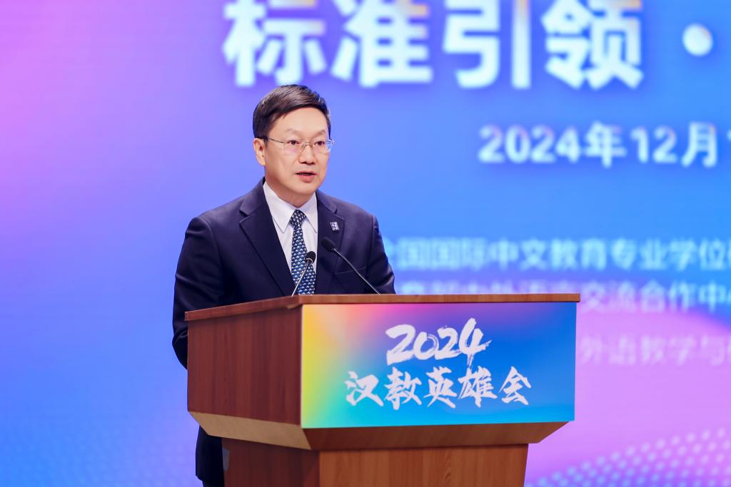本站讯(通讯员 赵英东)近日,由教育部中外语言交流合作中心、全国国际中文教育专业学位研究生教育指导委员会主办,中文联盟、北京外国语大学外语教学与研究出版社承办的2024全国“汉教英雄会”在北京举办。教育部中外语言交流合作中心副主任胡志平,世界汉语教学学会会长、全国国际中文教育专业学位研究生教育指导委员会副主任委员钟英华,北京外国语大学党委常委、副校长赵刚出席开幕式并致辞。