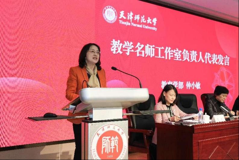 会上为首批教学名师工作室负责人授牌,教学名师工作室负责人代表仲小敏发言。她表示,获批教学名师工作室是一份荣誉,更是一份责任,她从深耕本科教学的经验出发,回顾了工作室成立与发展的历程,提出将汇聚广大教师力量进一步总结教学规律、提炼教学成果,努力为更多教师提供借鉴与指导,以实际行动助力学校教学质量的全面提升。