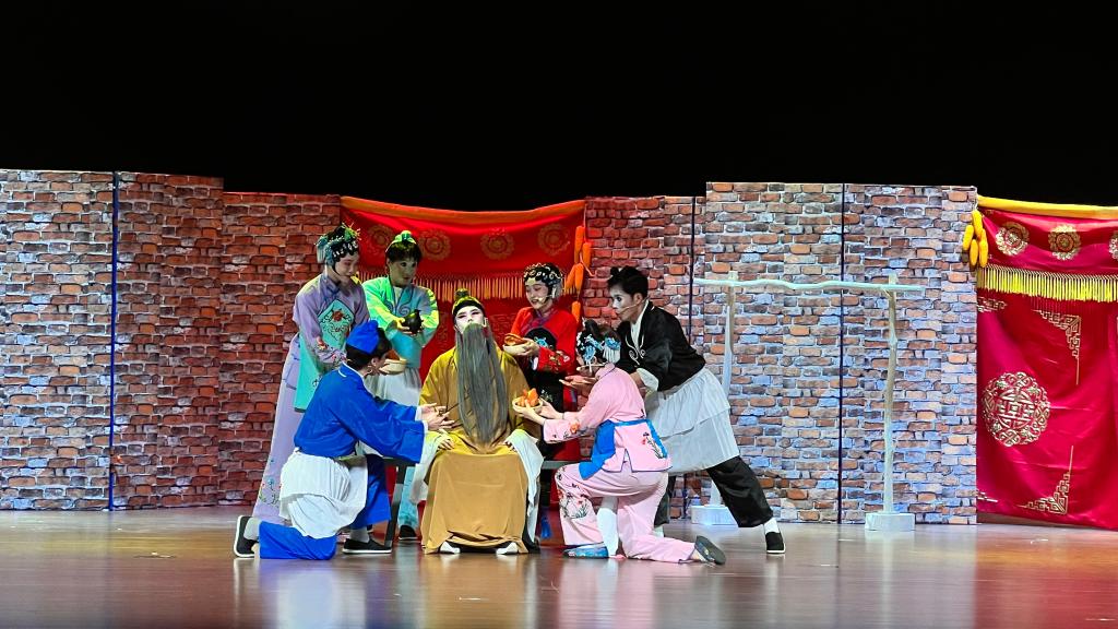 独幕剧作品《红枕头》,是一部脱胎于传统戏曲《墙头记》和水墨动画《抢枕头》的精彩话剧舞台之作。讲述了一位老人含辛茹苦养育三个儿子,却被自己的三个儿子儿媳像皮球⼀样踢来踢去,不愿承担赡养义务,在小女儿机智的设计下安享晚年,儿子儿媳被戏弄的故事。作品以中华民族传统美德中的孝道作为主题,通过细腻的叙事和精心设计的冲突,将一个平凡家庭内部的矛盾与温情展现得淋漓尽致。演员创作角色时融入大量传统戏曲“手、眼、身、法、步”等表现元素,角色造型完全继承传统戏曲行当中青衣、老生、花旦、小花脸等人物造型及角色色彩基调,将剧中人物塑造得栩栩如生。演员每一个表情、每一个动作都传递着角色丰富的内心世界,让观众能够真切地感受到人物的喜怒哀乐,产生强烈的共鸣。话剧《红枕头》不仅是对传统戏曲的致敬,更是一次跨越时空的对话。它以创新的形式传承经典,以深刻的内涵触动人心,现场为广大观众带来了一场难忘的艺术之旅。