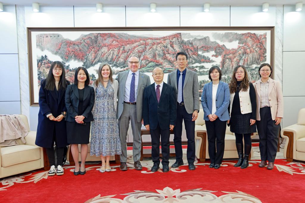 本站讯(通讯员 毛雁)11月5日,美国德保罗大学副校长吉安马里奥·贝萨纳(GianMario Besana)、教育学院院长珍妮·穆勒(Jennifer Mueller)、中国区域发展副总监杜宁一行来校访问。世界汉语教学学会会长、我校部校共建国际中文教育发展研究院院长钟英华,党委常委、副校长白学军会见代表团一行。我校部校共建国际中文教育发展研究院、国际交流处、外国语学院、国际教育交流学院相关同志参加。