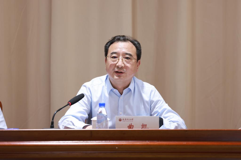 曲凯强调,要凝聚思想共识,准确把握新时代思政课建设的任务要求。不断夯实学理基础支撑,让理论研究阐释更好服务于思政课教学实际。充分发挥马克思主义理论学科的领航作用,以一流的学科、学术赋能思政课建设。要推动思政课教学改革创新,守正创新推动思政课建设内涵式发展。要加强思政课教师队伍建设,拓宽教育教学场地宽度,深入推进大中小学思想政治教育一体化建设。要加强协同联动,有效形成思政课建设强大合力。统筹汇聚校内外各方力量,将思政课作为关键课程,把课程思政作为全面性基础性工作,多主体密切合作、多方面协同发力,主动营造全校共同支持思政课建设的浓厚舆论氛围。要抓好思政课建设这项重要政治任务,切实增强责任感、使命感,真抓实干,担当作为,努力提升学校思政课建设质量和水平,助力天津新时代学校思政课建设和天津大中小学一体化大思政课综合改革不断开拓新局面,为培养更多让党放心、爱国奉献、担当民族复兴重任的时代新人作出新的更大贡献。