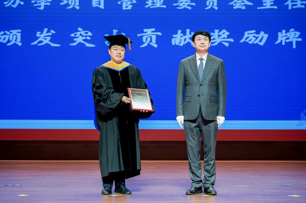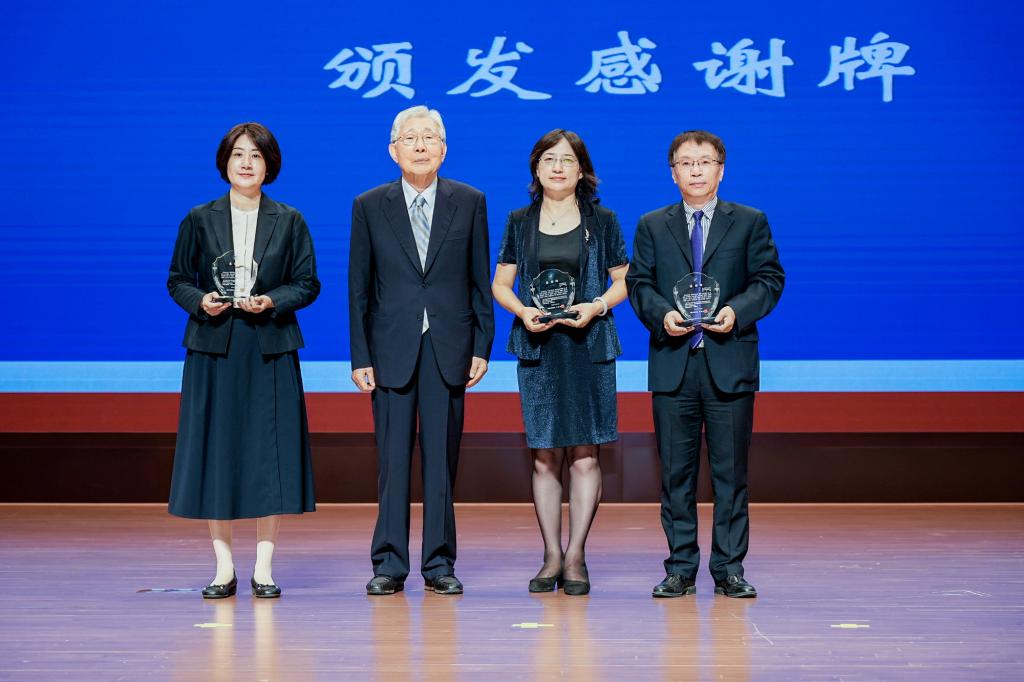 文石南向我校国际教育交流学院院长杨薇、管理学院院长刘冰、教育学部副部长仲小敏颁发感谢牌;钟英华向韩国世翰大学研究生院院长河英镐颁发突出贡献牌。