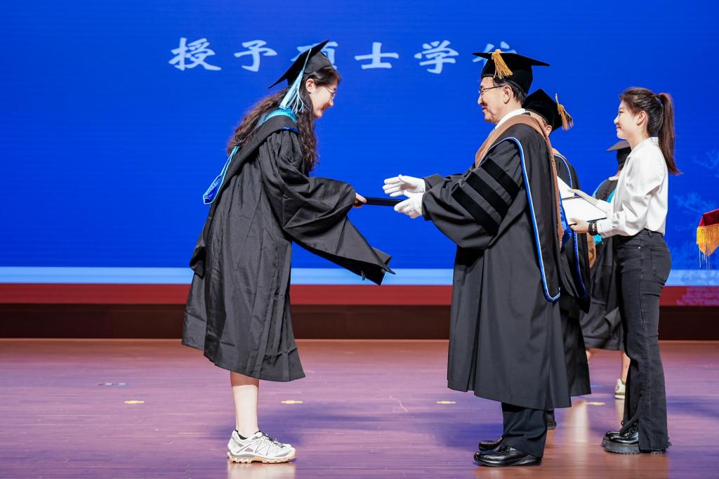曲凯向远道而来的来宾表示诚挚欢迎,向圆满完成学业、顺利获得硕士学位的同学们表示诚挚祝贺,向2024级新生表示热烈欢迎,向为项目顺利开展付出辛勤努力的全体教师和工作人员表示衷心感谢。他指出,教育对外开放是中国改革开放事业的重要组成部分,中外合作办学已经成为培养高水平国际化人才、推动教育综合改革、促进中外人文交流的重要方式和有效渠道,两校合作办学项目已成为中韩教育交流合作的典范。他勉励毕业生不懈追求学习进步,争做职业情怀深厚、创新思维日新、国际视野广阔、道德品质优良的时代精英,通过自身努力为中韩两国教育交流和中韩友好发展作出新的更大贡献。