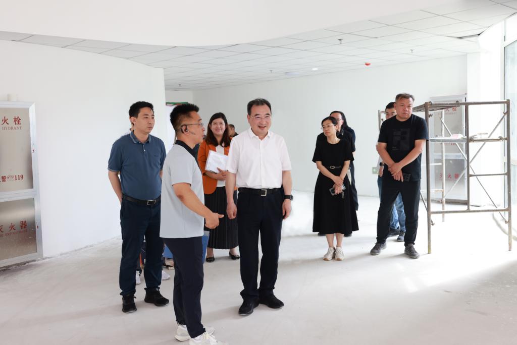 曲凯一行深入教学楼和操场,参观学校基础设施和校园环境,详细了解教室分布、施工进度与质量、安全保障、网络监控、文化建设,直观感受学校即将投入使用带来的新气象。