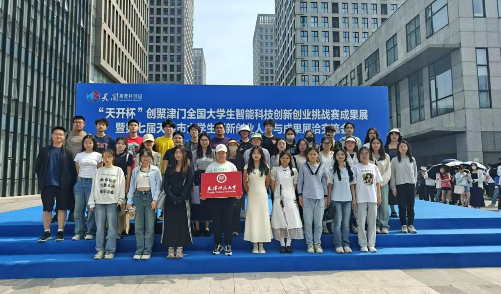 在与各赛道决赛同期举办的第七届天津市大学生创新创业人才与成果展洽交流会中,我校共有5个项目参加创意畅想赛道成果展,3个项目参加创新挑战赛道成果展,2个项目参加创业实践主赛道总决赛当天举办的成果展。我校共计百余名师生到场观摩。