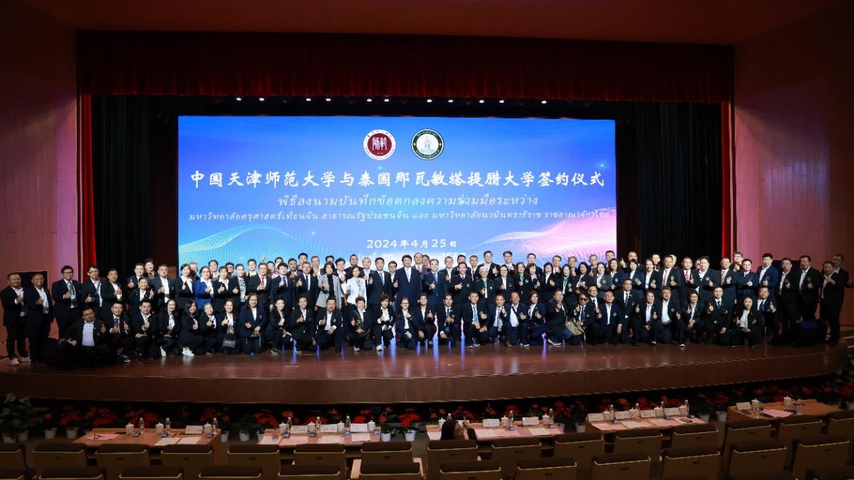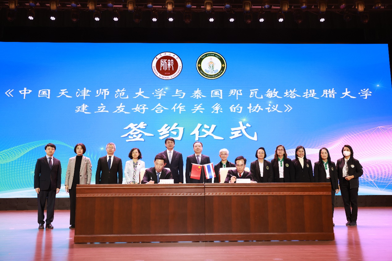 校党委书记曲凯,世界汉语教学学会会长、天津市政协科技教育委员会副主任、部校共建国际中文教育发展研究院院长钟英华,校党委常委、副校长陈玳玮,泰国那瓦敏塔提腊大学副校长彭萨·纳帕亚,校长助理希琳·纳拉农、苏丽·万甜,曼谷市政府秘书长助理松塔丽·舍恩萨姆里特,泰国卫生部常务秘书长特拉柴·宋吉亚卡温,泰国皇家警察第一移民局副局长帕林雅·克林凯索恩,泰国S.N.V.电气有限公司总经理查瓦蓬·查龙辛,泰国菲尼克斯有限公司总经理卡萨马特·尼拉帕塔玛以及高级领导培训班成员出席签约仪式。活动由钟英华主持。