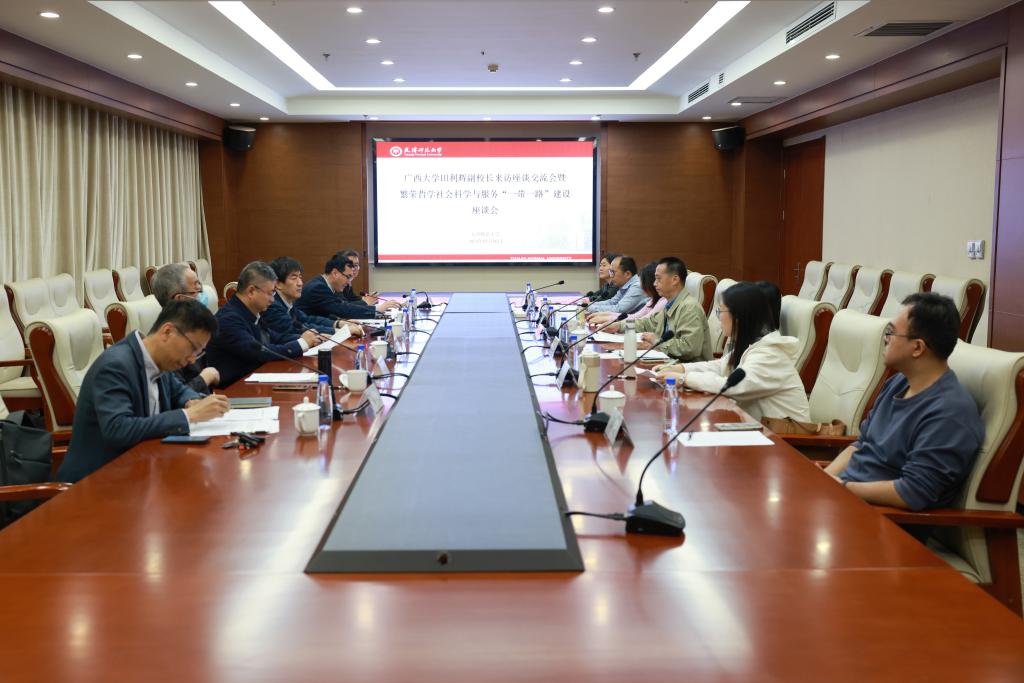 田利辉对进一步加强两校人文社会科学交流,并围绕国家重大战略开展深度合作表示支持。座谈会上田利辉介绍了广西大学繁荣哲学社会科学和服务“一带一路”建设的经验与做法,我校相关职能部门负责同志、教师代表分别从学科建设、国际交流、科学研究等方面对学校工作进行了介绍。