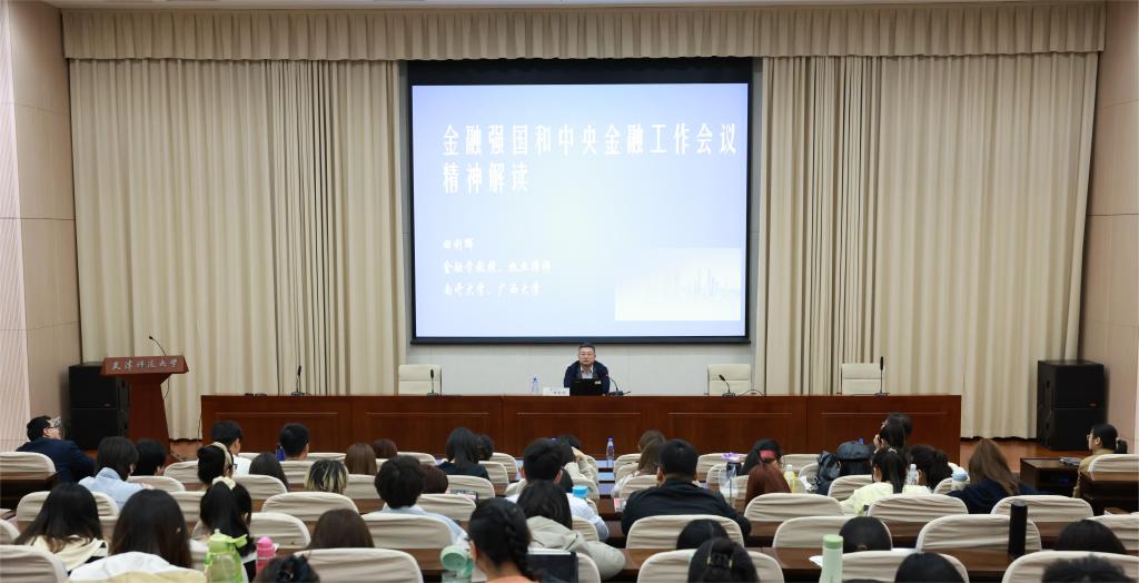 座谈会后,田利辉为我校师生作了《金融强国和中央金融工作会议精神解读》的学术讲座。经济学院、管理学院、外国语学院的200余位师生参加了此次讲座。