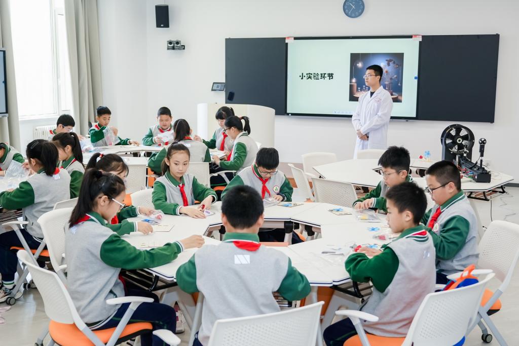 北京科技大学科普团队、天津理工大学科普团队、河北工业大学科普团队分别为天津市南开实验学校和天津海河教育园区南开学校的小学生们带来了《DIY-颜色会变的画制作》《风动未来:探索风力发电的奥秘》《神奇的光学现象-光栅衍射与偏振》等精彩的科普课程。现场互动频频、气氛热烈,这些活动不仅丰富了孩子们的课余生活,也为他们在“双减”背景下提供了更多接触科学的机会。