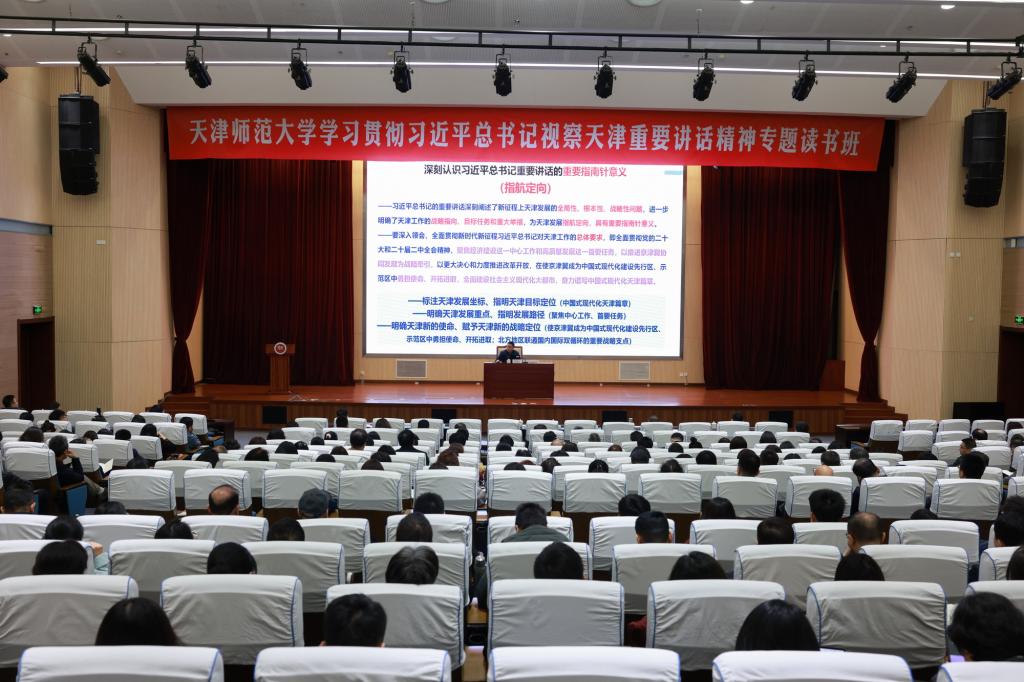 党委宣传部消息 为深入学习宣传贯彻习近平总书记视察天津重要讲话精神,3月13日,我校在会议中心大报告厅举办学习贯彻习近平总书记视察天津重要讲话精神专题读书班辅导报告会,邀请中共天津市委党校科研处处长倪明胜教授作报告。校领导班子成员、派驻纪检监察组和全校中层干部、机关在职党员、思政课教师、民主党派代表、学生代表等近400人聆听了专题辅导报告会。