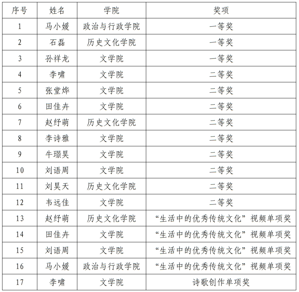 教务处、文学院消息(通讯员 李倩 李磊)近日,2023年华北五省(市、自治区)大学生人文知识竞赛华北五省总决赛落下帷幕,我校遴选的12名学生全部载誉而归,喜获一等奖3项,二等奖9项,视频单项奖4项,诗歌创作单项奖1项,其中政治与行政学院马小媛以第一名的总成绩获得一等奖。