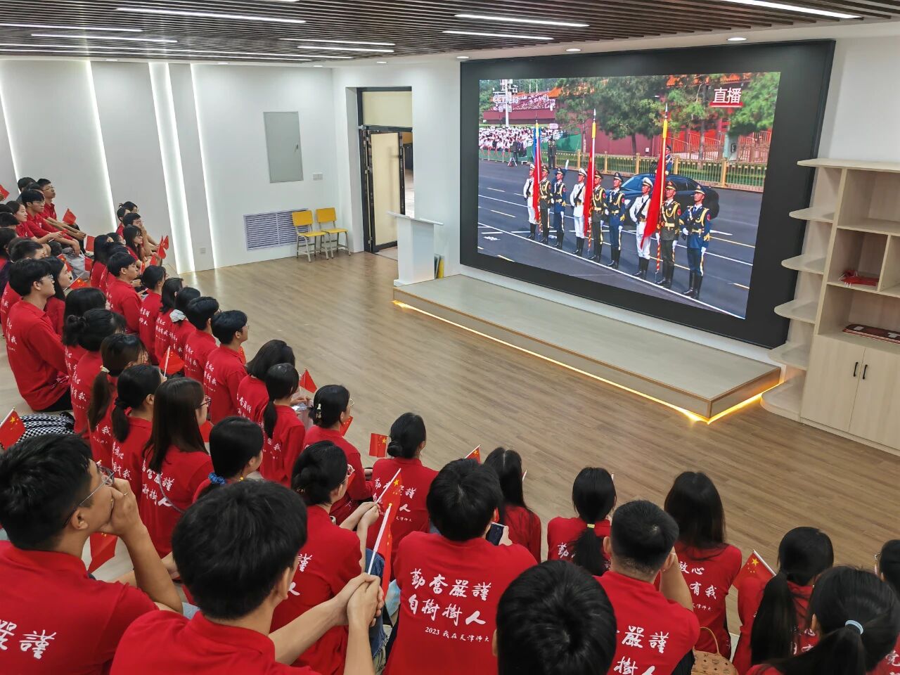 今天,我与百余名师生在学校“一站式”学生社区主会场收看阅兵盛况,共同上了一场气势磅礴、振奋人心、生动深刻的“思政大课”。整齐方阵踏响着中国人民对历史的深切致敬,先进装备承载着强国强军的坚实底气,从“万国牌”到自主研发,背后更是承载着一代又一代科研人的执着坚守与无悔付出。在即将到来的开学季,我也将充分利用这次鲜活的爱国主义教育素材,为学生讲好“开学第一课”,引导学生传承和弘扬伟大抗战精神,坚定理想信念,厚植家国情怀,练就过硬本领,让“请党放心 强国有我”的青春誓言响彻祖国和人民最需要的地方,为实现中华民族伟大复兴的中国梦不懈奋斗!
