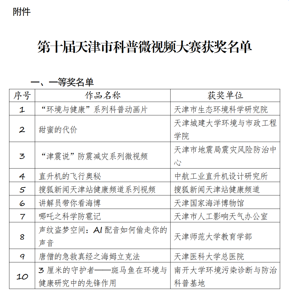 我校师生作品获第十届天津市科普微视频大赛一等奖