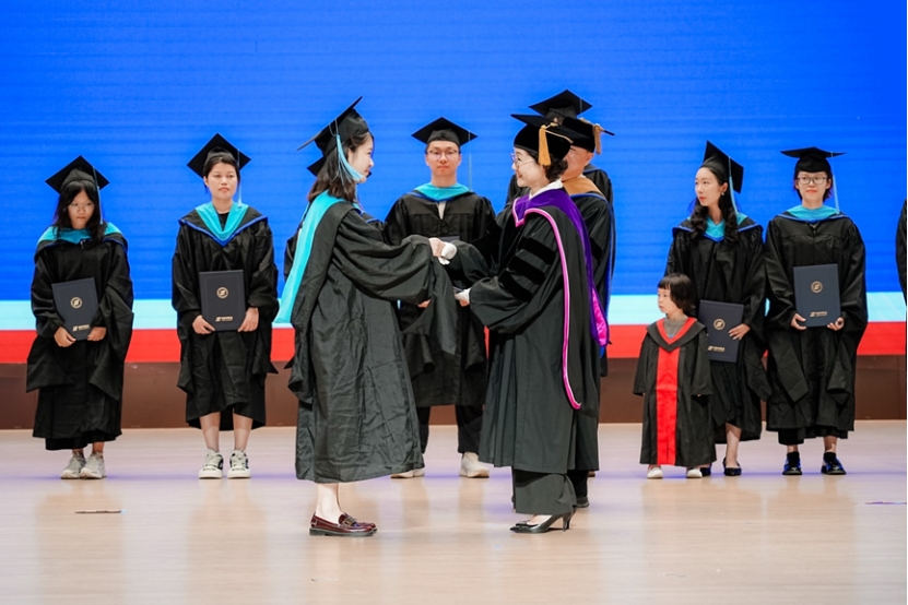本站讯(通讯员 郝晴 刘修缘)8月16日,中韩合作办学韩国世翰大学2025届硕士研究生学位授予暨2025级新生开学典礼在我校隆重举行。我校党委副书记、校长巩金龙、韩国世翰大学校长崔美顺出席并致辞。我校党委常委、副校长白学军,世翰大学研究生院院长河英镐、国际交流院院长李银嬉等9人出席典礼。仪式由中外合作办学项目管理委员会主任、部校共建国际中文教育发展研究院院长钟英华主持。我校研究生院、国际教育交流学院、教育学部、管理学院负责人,管理教师和任教教师,2025届毕业生、2025级新生700人参加。