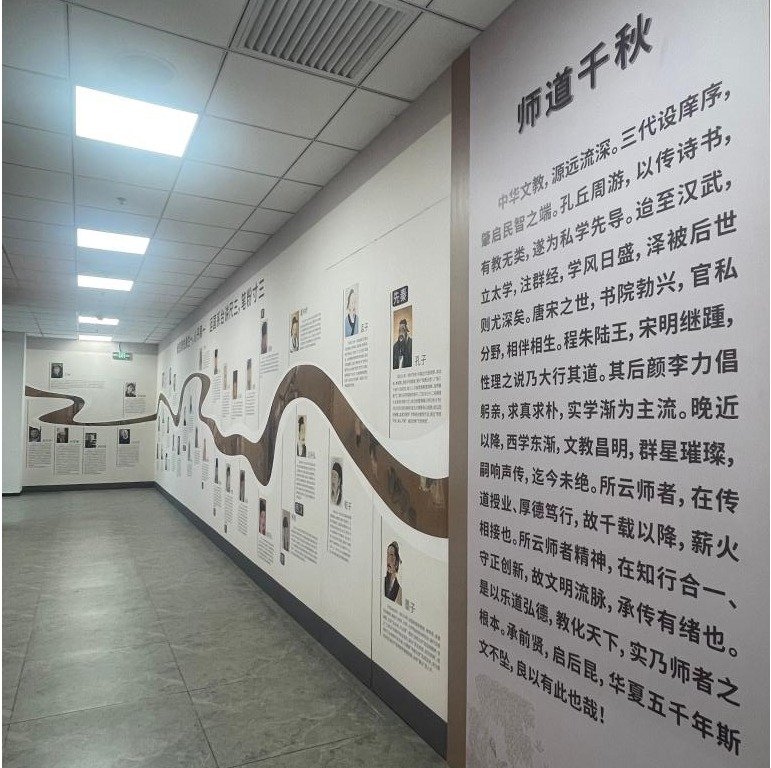 中心位于京津冀教师发展协同创新中心B座,由“六区两厅”组成,即指路明灯、师道千秋、薪火相传、砥砺前行、制度建设、传承启航等六个主题展示区域和前厅、附厅等二个功能厅。