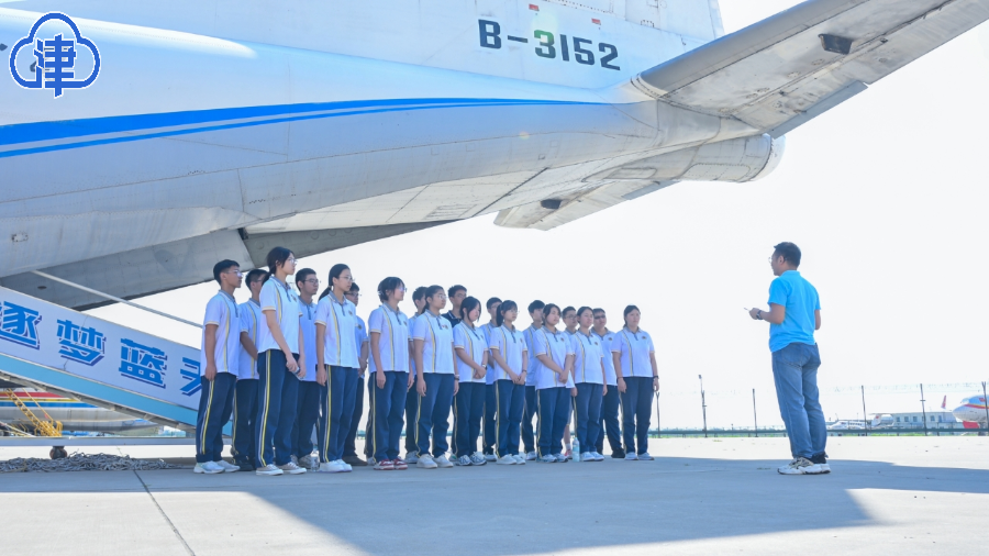 活动在中国民航大学停机坪拉开序幕。停机坪上陈列的飞机成为同学们了解中国航空工业发展历程的生动教材。“从国产的第一架喷气式战斗机歼-5,到自主研发的中程中型多用途运输机运-8的原型A12,每一架飞机都承载着厚重的历史记忆,勾勒出中国航空工业从无到有、由弱到强的壮丽轨迹。”在天津市第五十七中学教师王会朋的引导下,同学们不仅了解了这些飞机的技术特点和历史背景,更深刻体会到了先辈们为了国家航空事业的崛起所付出的艰辛努力。