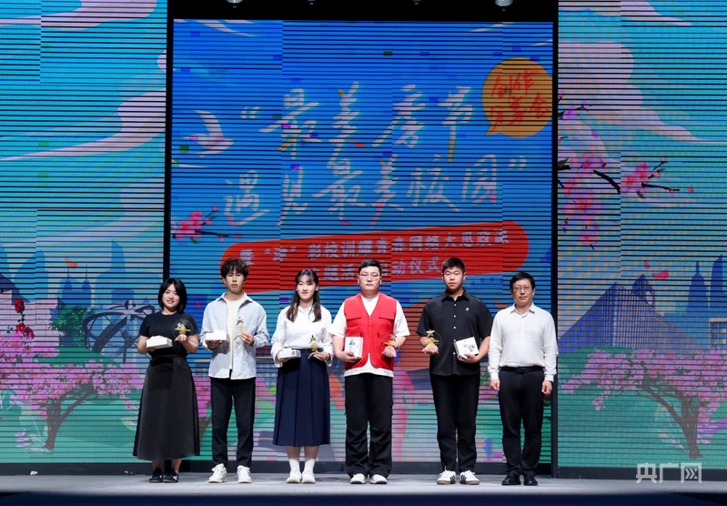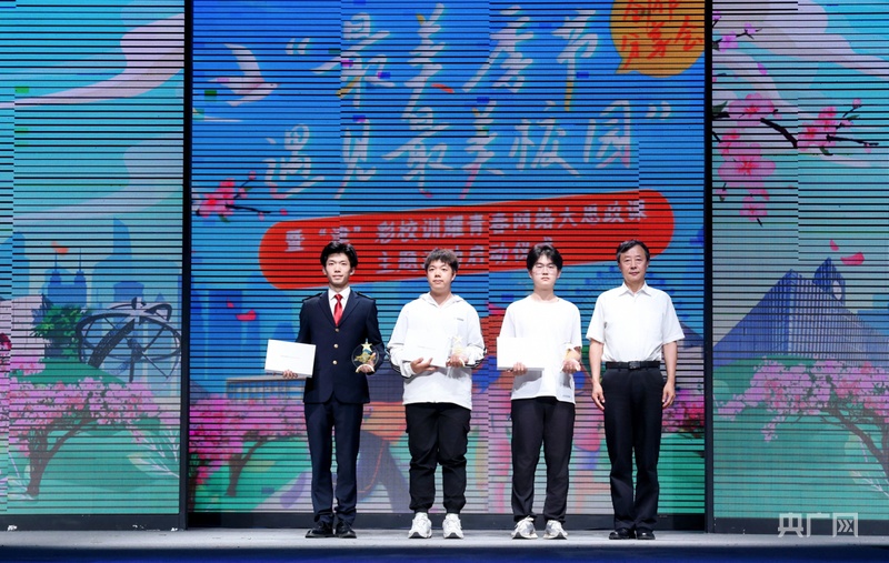 “最美季节遇见最美校园”活动一等奖获奖学生代表领奖