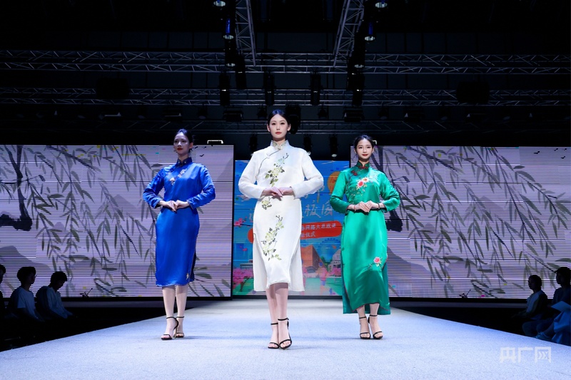 天津工业大学艺术学院表演系学生带来旗袍服饰秀《抽纱刺绣·华韵芬芳》