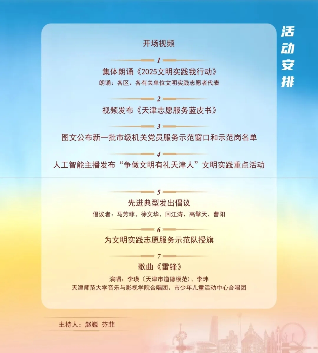 3月5日,由市委宣传部、市文明办、市委社会工作部、市委市级机关工委、市委金融工委、市城市管理委、市总工会、团市委、市妇联、天津社会科学院主办,河西区委宣传部、河西区委社会工作部、天津滨海农商银行承办的2025年天津市“学雷锋·文明实践我行动”主题活动在天津文化中心举行。