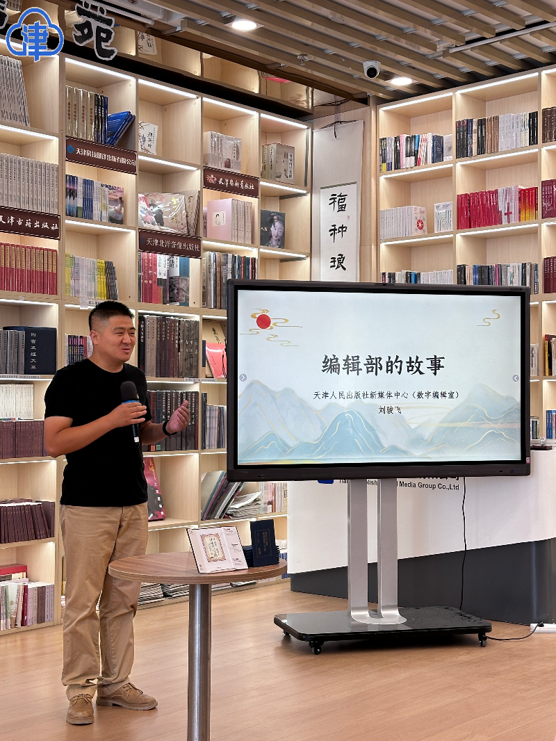 天津人民出版社总编辑任洁,该课程责任编辑、天津人民出版社数字编辑室主任刘骏飞介绍了创作背景、创作历程。数字编辑室的年轻编辑们春始策划、夏拟提纲、秋写讲稿、冬日拍摄,精雕细琢,《谭汝为心解诗词名篇三十讲》系列视频课程及相关文创终于在端午节得以正式发布,让更多人了了解诗词、欣赏诗词、爱上诗词,从而进一步弘扬中华优秀传统文化。