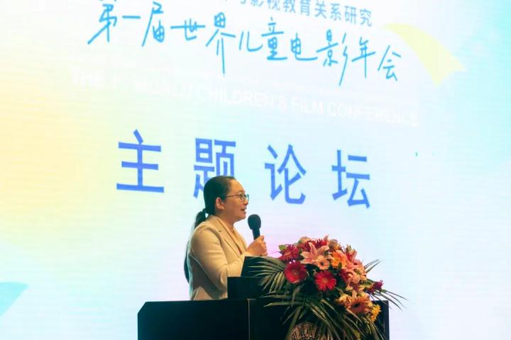 随后,举行了第一届世界儿童电影年会主题论坛。论坛由中华爱子影视教育促进会副会长、教育部高校戏剧影视教指委秘书长、北京师范大学亚洲与华语电影研究中心执行主任、教授、博士生导师、教育部青年长江学者张燕主持。