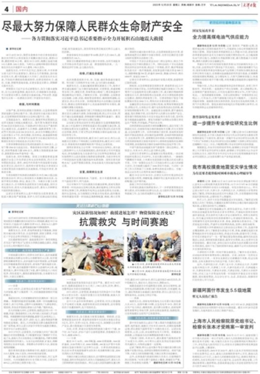 天津财经大学第一时间开展全面排查,了解学生受灾情况,启动临时困难补助帮扶和心理援助。目前,该校有一支研究生支教团正在甘肃、一支学生支教团正在新疆进行支教,经过全面排查,全体支教团学生均状态平稳、无伤亡损失。