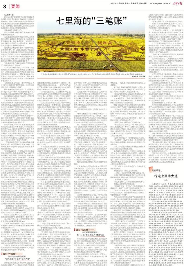 随着七里海的生态红利不断释放,宁河区涉农产业竞争的焦点从传统农业生产转换到了绿色农业、品牌农业、“芯片”农业的赛道上来。宁河区拥有全市首个国家现代农业产业园。近年来依托产业园龙头企业,宁河区推动米上牌、蟹上环、猪上市,目前有市级知名农产品品牌19个、“津农精品”品牌20个、农特产品40余个。在换新水产、天祥水产、原种猪场等“国字号”良种场带动下,建立起种稻、种猪、种鱼、种蟹、种苗5大种业产业集群,预计到2025年,种业年产值将达到10亿元。毗邻七里海生态廊道,产业发展自带绿色基因。七里海湿地自然保护区以南10公里,是天津未来科技城。这是同北京、武汉、杭州并称的全国四个未来科技城之一。宁河现代产业区是未来科技城六大组团之一,目前已经形成了智能制造、生物医药、汽车零部件、新能源、新材料、航空航天等6大主导产业。“产业区对入驻企业拉起了生态红线。高耗能、高污染、技术落后、效能低下的项目一律被设为红灯项目,利税再多也坚决不允许入驻。同时,产业区通过发展新兴产业,推进重点企业节能降碳技术改造等,全方位构建绿色低碳循环产业体系。”宁河现代产业区管委会主任闫伟说。天津泰正机械有限公司是一家专业研发汽车零部件的高新技术企业。2021年,该企业在宁河现代产业区布局新能源领域项目,新建的生产基地和研发中心今年10月正式投产。“产业区发展定位与我们不谋而合,园区形象与企业形象直接关联,生态门槛提升了我们的企业品质形象,这也是我们选择落户宁河现代产业区的重要原因之一。”天津泰正机械有限公司副总经理任静说。立冬过后,天气渐冷。在七里海大道以南,计划总投资约122亿元、规划总面积5.15平方公里的“小七里海”项目正在热火朝天地建设中。这个项目计划用5年时间建设芦苇洲公园、稻香美村、低碳绿坊三大板块,推动宁河区“绿水镶金边儿”工程提质升级。算好“民生账”——生态红利不断释放,家门口的“幸福不动产”随处可见环境就是民生,青山就是美丽,蓝天也是幸福。良好生态环境是最公平的公共产品,是最普惠的民生福祉。一笔“民生账”,算的是绿色生活方式,算出的是人与自然和谐共生的生态福利。生态好,生活才更好。这些年,从“求生存”到“求生态”,从“盼温饱”到“盼环保”,人民群众对优美的生态环境有了更多期待。秋日的暖阳照在兴芦公路上。记者从七里海湿地自然保护区管委会驱车前往俵口镇兴家坨村采访。道路两侧的太阳能路灯、村口的生活污水集中处理站、村边河塘中畅游觅食的水鸟、村子里参天的百年古树、院落旁的垃圾分类投放箱,一幅新农村绿色生态图景展现在记者眼前。由于与七里海湿地接壤,前些年,村里的“能人”承包水面养鱼养蟹、建起了水上游乐项目、办起了农家乐,钱是赚了,但生态却遭了殃。“生活垃圾到处都是,河里的水都是臭的,小鱼小虾全都不见了!”提起当年,村民们连连摇头。从2018年开始,一条生态红线穿村而过,兴家坨村发生了翻天覆地的变化。七里海湿地要修复,村民的生活环境也要改变。聊起村里这些年的变化,村党支部书记、村委会主任马全胜打开了话匣子,掰着手指头如数家珍。“结合农村人居环境整治,村里铺设地下管道,建设污水集中处理站,取消土暖气,用上清洁能源,兴家坨村实现了从‘脏乱差’到‘生态美’的大变样。”“村民最受益的还是‘厕所革命’。如今,旱厕在兴家坨村已彻底成为历史。”“旱厕改水冲,不稀奇呀!”记者插话道。“不完全是那么回事儿。我们用的是负压式厕所,跟高铁上的一样!”马全胜拦了记者的话,很是自豪地说,“按钮一按,直排村外污水集中处理站。液体部分经过净化处理,可以达到国家规定的Ⅲ类水质、准入河道标准。固体部分经过加工成了有机肥料。”“在村口确实看见了一座污水处理站。”记者说。“那是其中一座,村子周边一共有两座污水集中处理站,能够满足全村的污水处理需求。”马全胜回应。目前,宁河区已经建成京津冀地区规模最大的农村真空负压污水收集系统。生活因生态而改变。兴家坨村村民杜云春今年67岁,生态红线划定后,他家里的4亩耕地全部流转了出去,每年拿流转费。杜云春还当上了村里的保洁员,他跟记者粗算了一笔账,不用种地了,这两年反而比以前收入更高。每亩地1000元的流转费,再加上当保洁员的工资,年收入比之前种地还多两万元。“我们兴家坨人,幸福着呢!” 杜云春冲着记者喜滋滋地说。幸福生活也不仅仅是在兴家坨村。11月3日,一股冷空气来袭,津城气温普遍下降。记者来到潮白新河畔的洛里坨村,走进村民李树安家的院落,宽敞的农家小院收拾得干净利落。“冬季取暖,咋办呢?”“现在都是燃气入户,取暖、做饭都靠天然气。”说着话,李树安把记者让进屋。门口墙壁上有一个天然气炉热源控制箱,沿着墙边是一组暖气片,暖气管连接每间屋子。“我家一共70平方米,冬天每月取暖费大约300元,挺合适的。清洁能源不仅让空气质量好,咱自家屋里还干净呢!”目前,宁河区已经基本形成了清洁能源集中供热体系。其中,城区及潘庄镇、造甲城镇居民楼热电联产占比96%、燃气占比0.8%、地热及其他占比3%。今年入冬前,当地政府部门还对七里海湿地自然保护区周边村落的老旧管网和燃气站