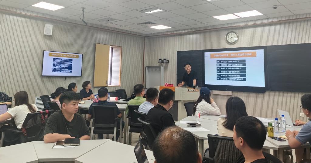 孙华志教授结合多年教书育人的经验以《亦师亦友的尺度—师生关系边界与温度》为题展开分享。他从“痛心之鉴:突破边界的代价”“回溯传统:边界与温度的原生态”“审视当下:师生关系的新生态”“明晰边界:守护教育的秩序”“营造温度:传递教育的温情”“践行路径:构建亦师亦友的关系”六个维度,与青年教师们进行了推心置腹的交流。他谈到,师生关系既要有育人的温度,又得守好专业的边界。二者平衡,教育才能真正抵达育人心灵的彼岸。