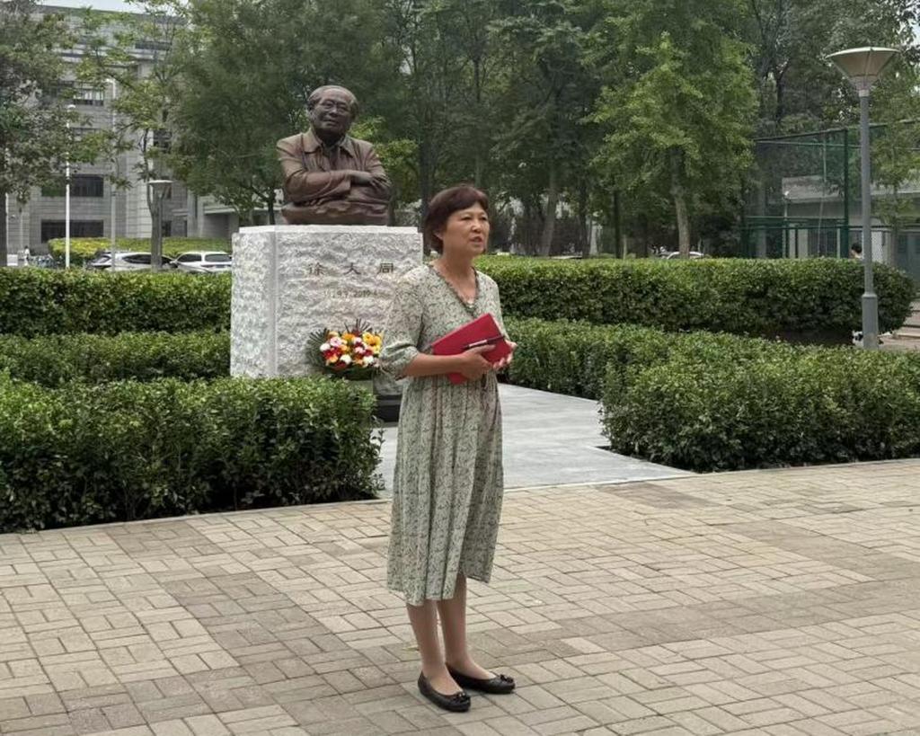 刘红英介绍了徐先生铜像的落成背景,分享了徐大同先生“为中国研究西方,以大局观引领队伍”的感人故事。她谈到,徐大同先生一生始终心怀“国之大者”,为党的教育事业奉献了毕生心血。他用实际行动生动诠释了“大先生”立德树人的教育家精神,展现了一名共产党员始终坚持“为党育人、为国育才”的赤诚担当。她号召全体教师以先生为榜样,将个人学术追求与国家法治建设需求紧密结合,为教育强国建设贡献力量。