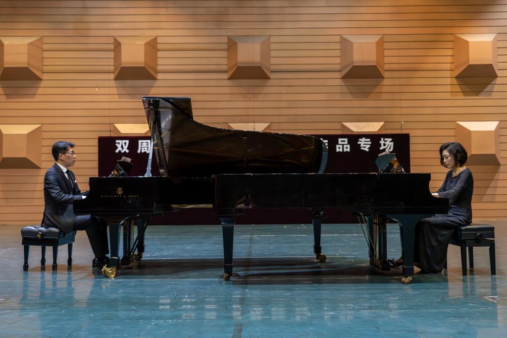 郭晶晶和毕汉辰两位老师演奏的《a小调双钢琴小协奏曲》为音乐会拉开了序幕。这首双钢琴文献中的经典之作,以其独特的双钢琴形式、生动的音乐对话、富有交响性的音响效果,以及演奏上的合作挑战而著称,展现了肖斯塔科维奇在音乐创作中的幽默感和细腻的情感表达。