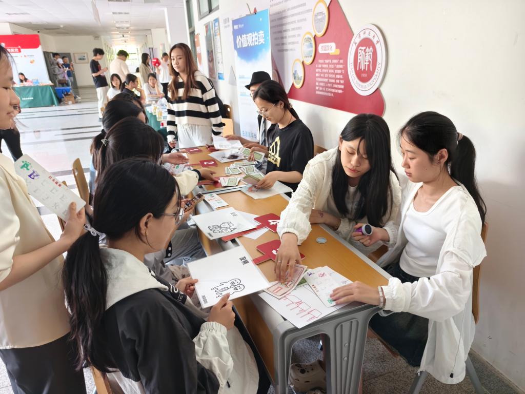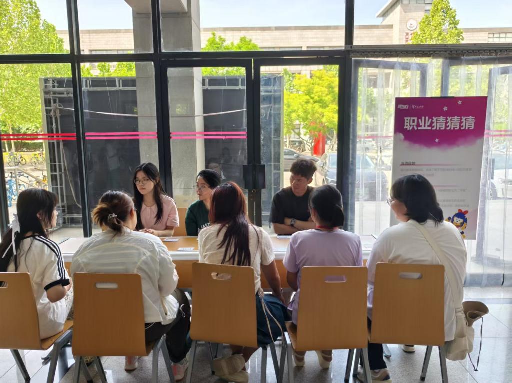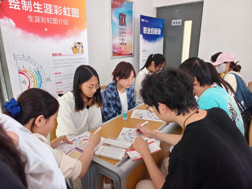 活动现场,“职业自画像”“价值观拍卖会”前始终排着长队,学生在工作人员引导下,通过霍兰德测试、能力矩阵等工具绘制专属职业彩虹图,涂抹不同人生阶段的角色浓度,挖掘内心真正的职业追求。“职业飞行棋”环节将职场规则融入游戏场景,让学生在笑声中破解求职“新手村”难题。在“简历找茬”“发光的自我介绍”环节,同学们积极发言,递上精心准备的简历,提前体验职场面试现场。