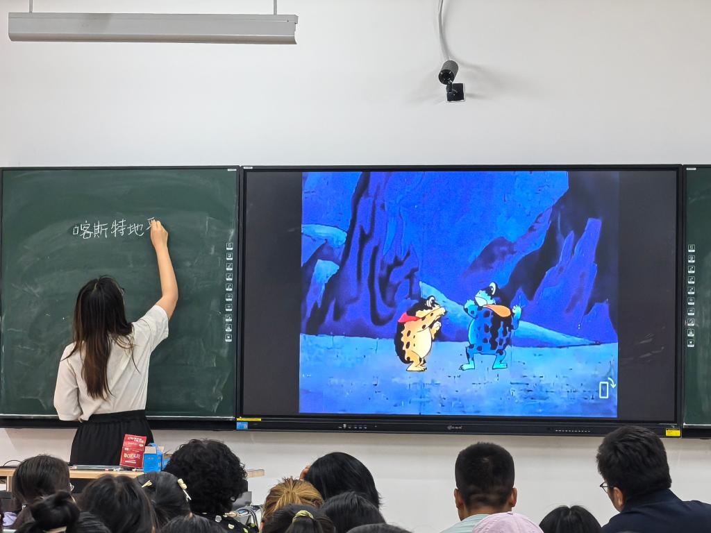 决赛现场,一个葫芦娃从屏幕“蹦”出来,勾起了儿时回忆,“葫芦娃的出生地是哪儿”问住了观众也问住了评委;剧本杀式“农业区位因素听证会”一声激起千层浪,观众们啧啧称奇;新闻时事“天津大风你知道吗”引发大家热烈讨论……一堂堂别开生面的精彩微课,彰显出地理系学子的青春风采与专业素养,整个赛场掌声雷动,气氛热烈。