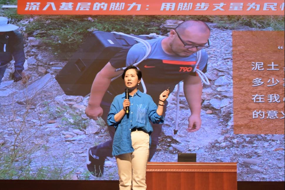 讲座立足新闻传播学科教育,凸显出闫征的母校情怀。她以“新闻人最重要的天赋”为话题引入,告诫在座各位同学:新闻人要永远在奔跑。闫征深情回忆求学经历,感慨当年在师大埋下的新闻基因,正是在专业老师的鼓舞下新闻理想一点点萌芽。天赋不是闫征的加分项,她始终相信机会只留给有准备的人。她用不停的“奔跑”,重新定义那个曾经不起眼的自己。讲座贴近媒体现实,解读时代需求。正是二十年如一日地奔跑在新闻道路上,书写了闫征从“小白”到获得“长江韬奋奖”(长江系列)的非线性成长跃迁的职业路径。从事新闻工作以来,她凭借细致的观察能力,敏锐的新闻嗅觉,采访了大量优秀的新闻作品。讲座中,她着重介绍了她曾获得的中国新闻奖一等奖背后的新闻故事。2018年,她与团队负重百余斤的设备,用“飞机+汽车+徒步”方式,走进甘肃陇南大寨村,拍摄短视频新闻作品——《臊子书记》,荣获“第二十九届中国新闻奖短视频新闻一等奖”。闫征谈道,作为一名新闻人,如果不是天才型选手,那就做持久的战士。