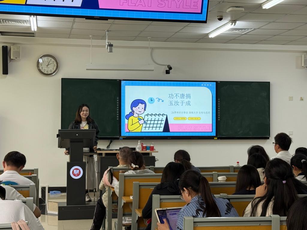 本站讯(通讯员 单一鸣)为深入贯彻落实立德树人根本任务,健全学风建设长效机制,推动学院学风建设提质增效,近日,生命科学学院于劝学楼A201举办学风建设推动会暨2026届考研动员大会。学院副院长黄辉、党委副书记、纪委书记史晓晨,近百名大三备考学子共同参加此次活动。