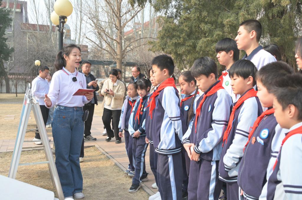 “师大马院的大哥哥大姐姐们一上台就说了段天津快板儿,这可真是太有意思了!”来自南开区义兴里小学的景睿同学兴奋地说。在“古韵津风”优秀传统文化展示环节,来自马克思主义学院的姜舒钰一段极具天津特色的快板儿表演,瞬间点燃了现场气氛。“这段快板儿让我们轻松了解了润园及五大道地区的历史沿革和文化底蕴,还让我们感受到非遗曲艺的独特魅力。”姜舒钰介绍道。这样的研学活动,充分挖掘出天津的古韵与红色文化的交融之处,使学生们初步感知了本地红色资源,激发了他们对红色文化的深深共鸣。
