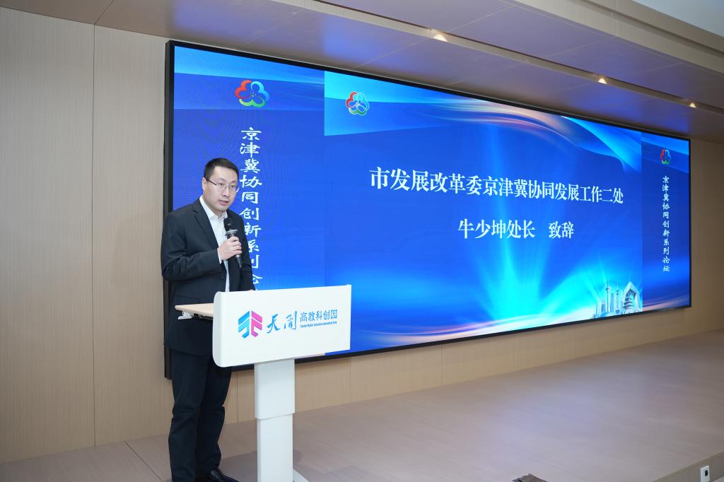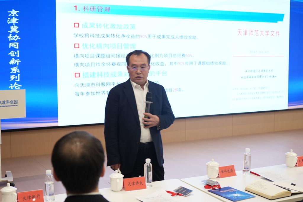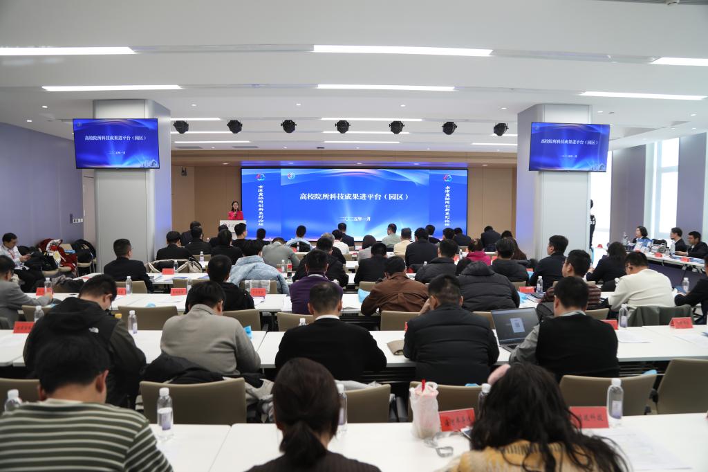 在活动开场环节,市协同办协同二处处长牛少坤致欢迎辞,天开集团副总经理王杨介绍天开园基本情况及支持政策,我校科技处处长王凡俊围绕科技成果转化现状与未来规划发表了全面且深入的见解,系统呈现了我校在科技创新领域的整体布局与发展思路,获得与会各方高度关注。